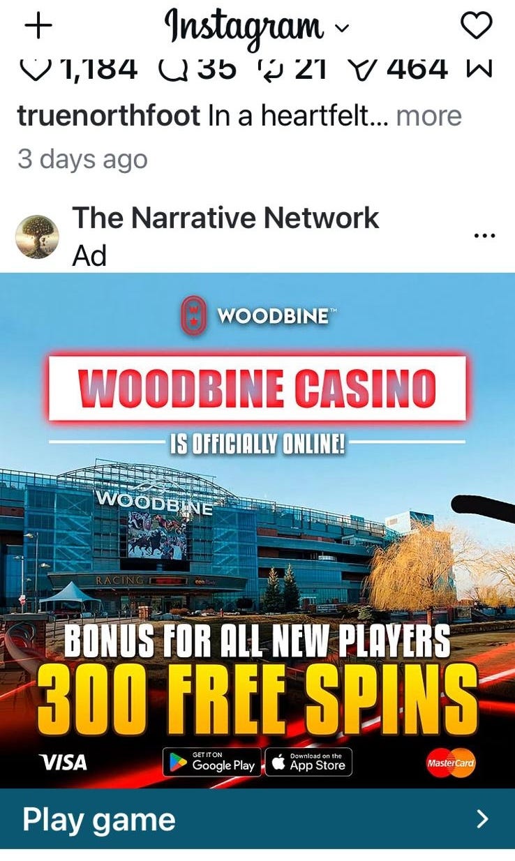 Why mention this in a newsletter covering the business of gaming, you ask? Well, we’ve also reached out to Meta for a response to a flurry of fake online casino ads that have come a tumbling down our Instagram feed over the past month. Many of these ads tend to try and exploit land-based casino entities such as Woodbine, Casino Rama and Great Canadian Entertainment properties like Pickering Casino Resort Hotel.
