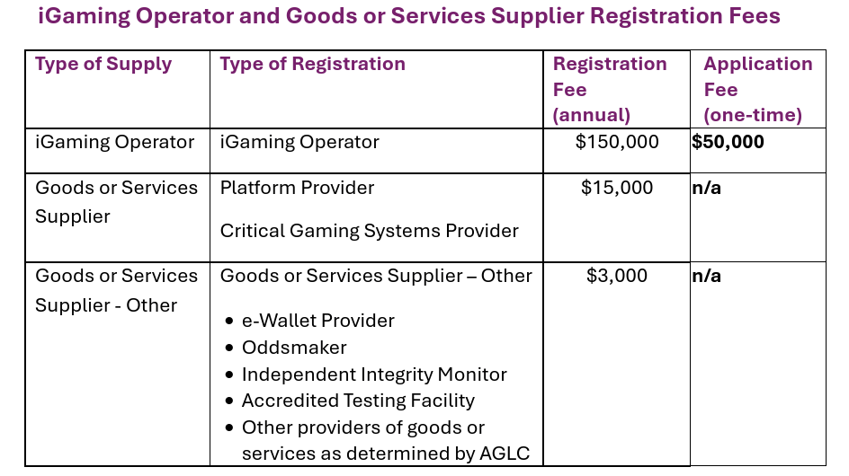 The registration process is similar to the one in Ontario that involves the Alcohol and Gaming Commission of Ontario and iGaming Ontario with registration going through AGLC and a commercial agreement then struck with the new Alberta iGaming Corporation.