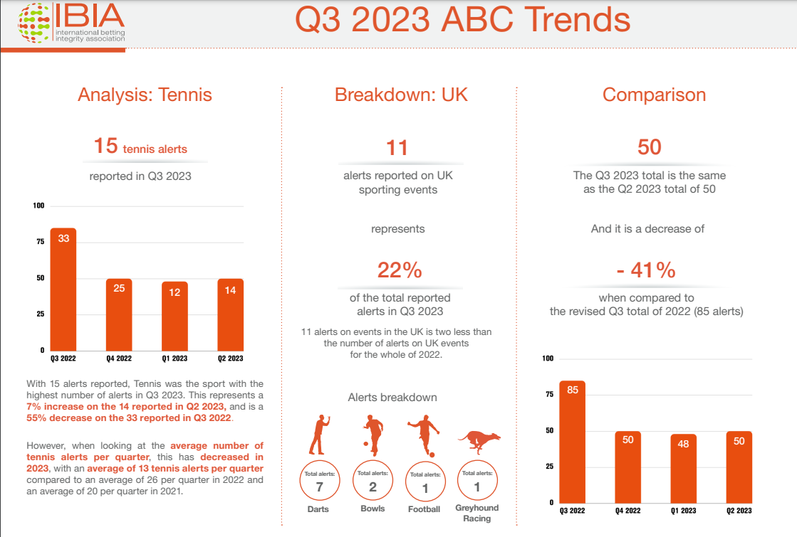 The Q3 integrity report includes a breakdown of alerts reported on sporting events taking
