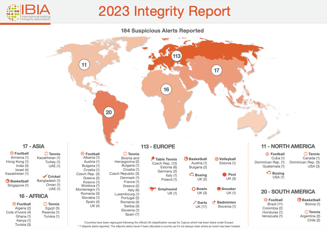 IBIA released its 2023 Integrity Report yesterday, highlighting a 35-per-cent year-over-year decrease in the number of suspicious betting alerts. That would be 184 alerts last year, compared to 285 in 2022.