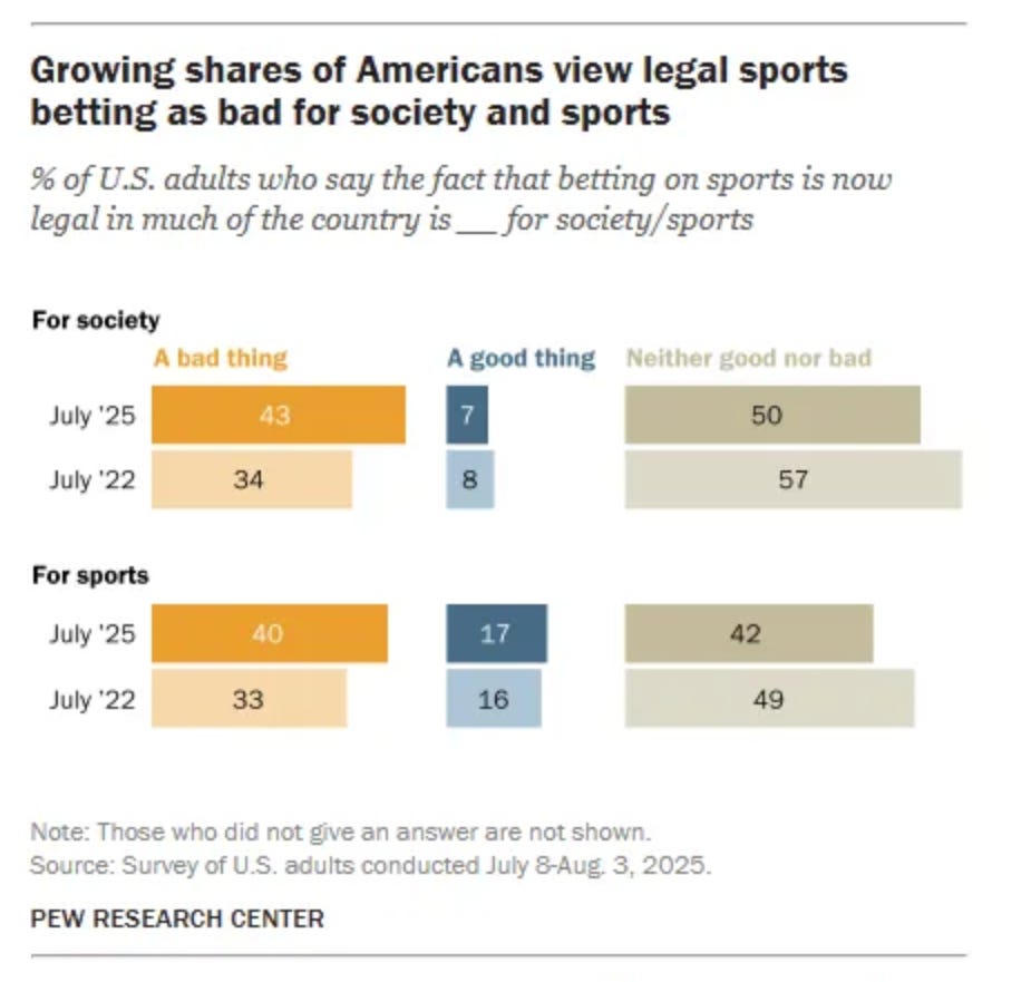 The big question from a new Pew Research Centre poll: How will the industry respond to growing negativity over legal sports betting?